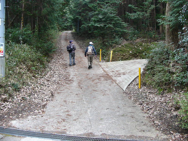 16:31 | ここからは林道を左へ辿る事になるが、すぐ右手の谷沿いに「保津峡ハイキングコース」はまだ続いているのだが案内表示もないのでこの時点では気が付かず、ハイキングコース終点に着いたものと勘違いして苦手な舗装道路を大きく迂回することになる |