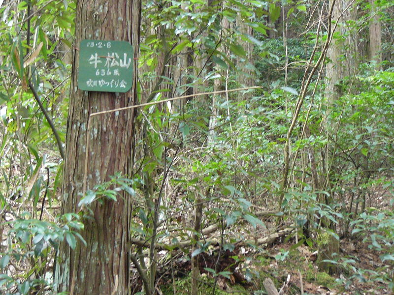 10:55 | 愛宕神社の裏手に回り込むようによく踏まれた山道が右手に現れるので左手の樹木に付けられた小さな道標に案内されてここから牛松山に取り付く |