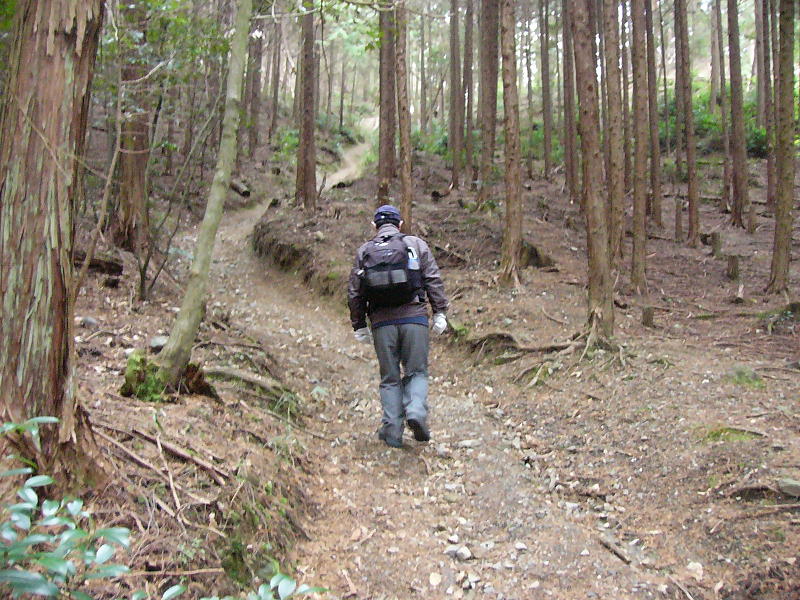11:13 | 樹間に伸びる急坂の連続で普通ならとっくに汗が噴き出しているはずだが、さすが2℃という今の気温では汗もほとんど吹き出るタイミングが取れないようでタオルの出番も回ってきそうにない |