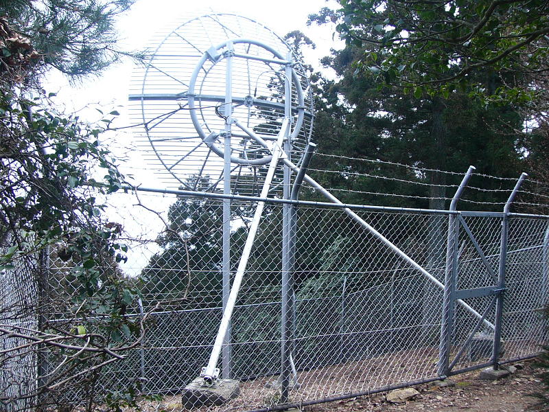 程なくNHKのパラボラアンテナが建てられた牛松山(636m)山頂に付くる 霧状の細かい雪がちらつく山頂から、金網越しに東の雪雲に霞んだ愛宕山がウッスラと顔を覗かせている |