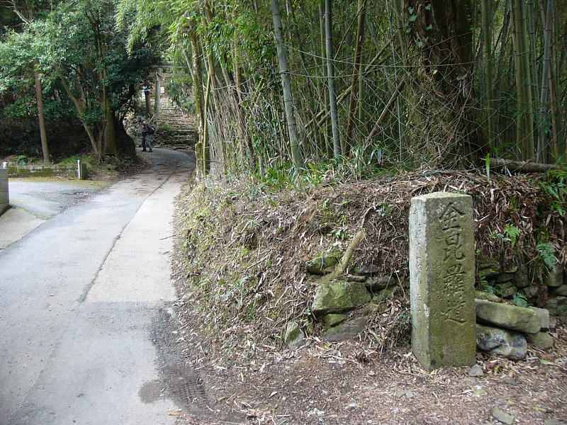 13:42 | 登山口から20mも西へ辿ると竹林の途中で“金毘羅道”と掘られた石標の見送りを受けて |