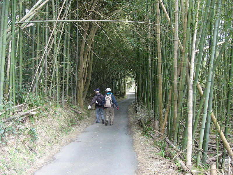 13:48 | 道は両側からの竹に挟まれてトンネルを潜るように南へ続く |