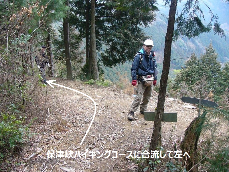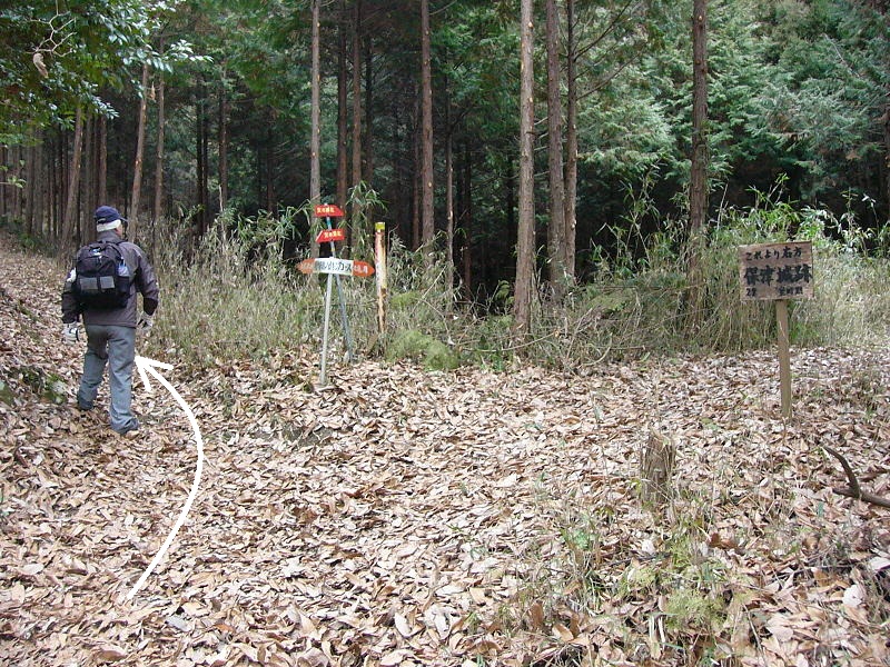 5分近く緩やかな斜面を進むと├字分岐が現れる 右には“保津城址”があるようだが、全く遺構も見ることが出来ないようですので立ち寄らずに真っ直ぐ足を進める |
