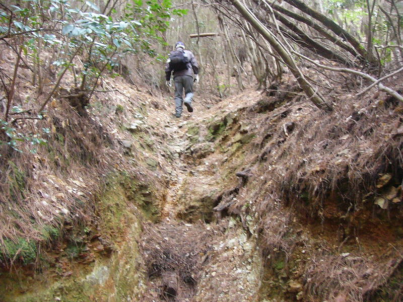 14:49 | すぐV字状に抉れたダケ道の出迎えを受けますので足場を確かめながら露岩混じりの荒れた道を登る |